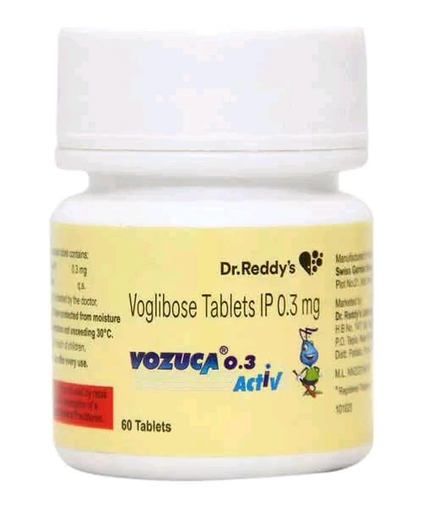 Vozuca Activ 0.3 Tablet is a medicine used to treat type 2 diabetes mellitus. It helps control the high blood sugar levels in your body after each meal. It is used when other similar medicines along with a restricted diet, are unable to control abnormally high blood sugar levels.