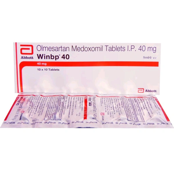 WINBP 40MG TABLET is used for the treatment of hypertension (high blood pressure). Additionally, it is used to reduce the risk of heart attack or stroke and kidney problems. It contains Olmesartan, which relaxes blood vessels and allows the blood to flow more smoothly and the heart to pump more efficiently. It may cause side effects such as dizziness, headache, nausea, indigestion, diarrhoea, stomach ache, gastroenteritis, and upper respiratory infections. Before taking this medicine, you should tell your doctor if you are allergic to any of its components or if you are pregnant/breastfeeding, and about all the medications you are taking and pre-existing medical conditions.