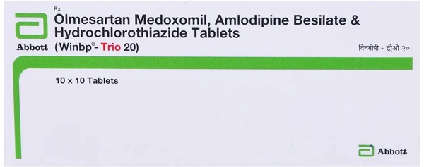 WINBP TRIO 20MG TABLET is used for lowering high blood pressure (hypertension) by removing extra fluid (electrolytes) from the body. It works by relaxing and widening the narrowed blood vessels. It reduces the heart's workload and makes it more efficient at pumping blood throughout the body. Also, it removes extra water/fluid and certain electrolyte overload from the body. Thus, it lowers fluid overload and high blood pressure, improves blood flow, and reduces the future risk of a heart attack and stroke. In some cases, it may cause common side effects such as nausea, upset stomach, dehydration, headache, diarrhoea, electrolyte imbalance, headache, feeling exhausted, swollen ankles, dizziness, and decreased blood pressure. Before taking this medicine, you should tell your doctor if you are allergic to any of its components or if you are pregnant/breastfeeding, and about all the medications you are taking and pre-existing medical conditions.
