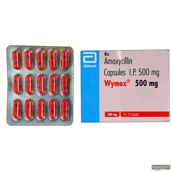 Wymox 500 mg Capsule is an antibiotic medicine used in the treatment of bacterial infections of the ear, nose, throat, skin, urinary tract, tonsillitis, bronchitis, and pneumonia and also used to treat diarrhoea. This medicine contains amoxycillin, which works by inhibiting the protein synthesis of the bacterial cell and thereby helps fight infection-causing bacteria. This medicine is not effective for treating viral infections. Common side effects include skin rashes, nausea, vomiting, bloating, and gas.