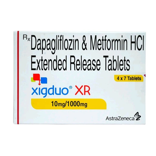 Xigduo XR 10 mg/1000 mg Tablet is used to treat type 2 diabetes mellitus. It contains Metformin and Dapagliflozin which work by eliminating excess sugars from the body through urine and restoring the body’s response to insulin. In some cases, this medicine may cause side effects such as nausea, vomiting, diarrhoea, headache, and dizziness. Before taking this medicine, inform the doctor if you are pregnant or breastfeeding, taking any other medication, or have any pre-existing medical conditions.