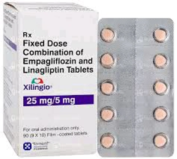 Xilingio 25mg/5mg Tablet is a combination medicine that helps control blood sugar levels. This medicine is used with diet and exercise to improve blood sugar control in adults with type 2 diabetes mellitus. It helps properly utilize insulin, thereby lowering the blood sugar level.