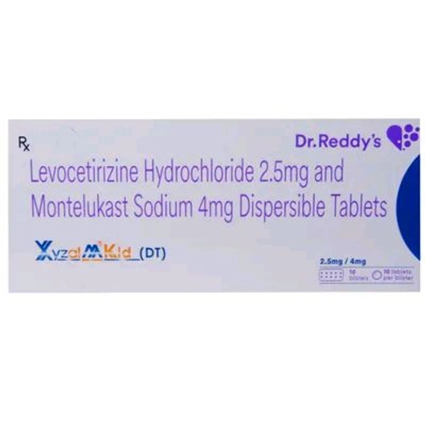 Xyzal M Kid DT Tablet is used to treat sneezing, runny nose due to allergies such as hay fever and allergic skin conditions in children. It contains Montelukast and Levocetirizine, which work by blocking the effects of chemical messengers that cause allergic reactions. In some cases, this medicine may cause side effects like nausea, vomiting, diarrhoea, headache, and fatigue. Let your doctor know if your child is taking any other medicines or has pre-existing medical conditions.