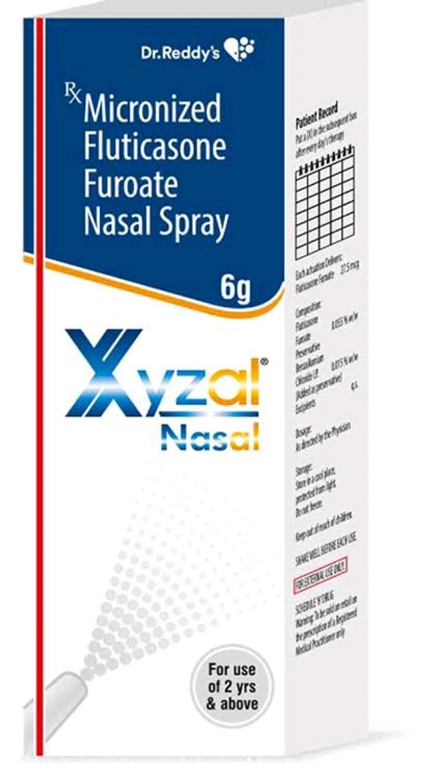 Xyzal nasal spray (containing fluticasone) is a prescription steroid used to treat allergic rhinitis symptoms, including nasal congestion, sneezing, runny/itchy nose, and watery eyes caused by allergies. It works by reducing nasal inflammation and is effective for both seasonal and year-round allergies in adults and children over 6 years old.