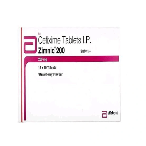 Zimnic 200 mg Tablet is used to treat bacterial infections of the ear, nose, sinuses (sinusitis), throat (tonsillitis, pharyngitis), chest and lungs (bronchitis, pneumonia) and urinary system (cystitis and kidney infections). Additionally, it is also prescribed to treat uncomplicated gonorrhoea (cervical/urethral). It contains Cefixime, which weakens and destroys the bacterial cell wall, leading to death. As a result, it helps to treat bacterial infections. Sometimes, you may experience common side effects such as diarrhoea, nausea, loose stools, abdominal pain, dyspepsia, indigestion, and vomiting. Before taking this medicine, you should tell your doctor if you are allergic to any of its components or if you are pregnant/breastfeeding, and about all the medications you are taking and pre-existing medical conditions.