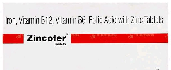 Zincofer Tablet is used to treat nutritional deficiencies. It promotes the production of red blood cells, regulates essential metabolic functions and aids the development of body tissues. In some cases, this medicine may cause side effects such as stomach upset, constipation, diarrhoea, nausea, and vomiting. Inform the doctor if you are pregnant or breastfeeding, taking any other medication, or have any pre-existing medical conditions