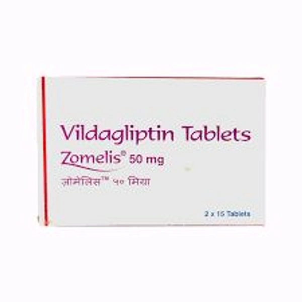 Zomelis 50 mg Tablet is used in the treatment of type 2 diabetes, especially in patients whose blood sugar levels are not controlled by diet and exercise alone. It may be used alone or in combination with other medicines. It contains Vildagliptin, which increases the level of incretin hormone (released after the meal to stimulate the release of insulin from the pancreas) so that sufficient insulin can be produced from the pancreas to lower raised blood sugar levels. In some cases, it may cause side effects such as dizziness, nausea, headache, excessive sweating, low blood sugar levels, and trembling. Before taking this medicine, you should tell your doctor if you are allergic to any of its components or if you are pregnant/breastfeeding, and about all the medications you are taking and pre-existing medical conditions.