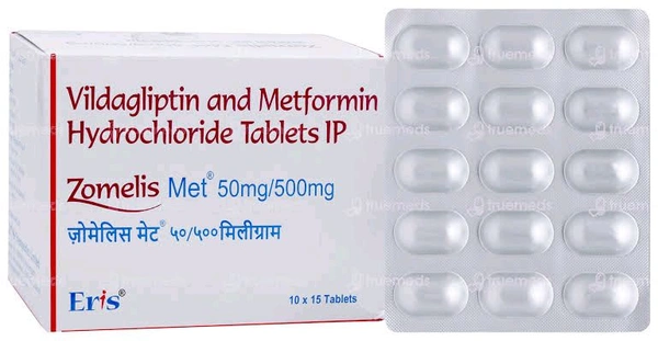 Zomelis Met 50mg/500mg Tablet is a combination of two medicines that control high blood sugar levels in people with type 2 diabetes mellitus. This helps prevent serious complications of diabetes, such as kidney damage and blindness, and may also reduce your chances of having a heart attack or stroke.