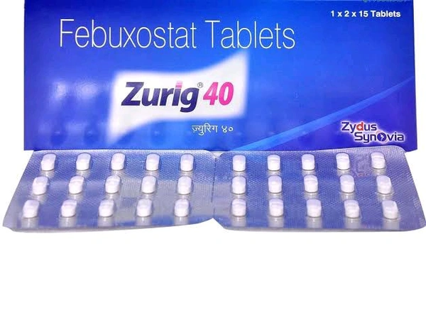 Zurig 40 Tablet is a medicine used to treat and prevent gout. Gout happens when there is too much uric acid in your body and it forms into crystals that can appear around your joints leading to painful and swollen joints. This medicine helps to keep uric acid levels low.