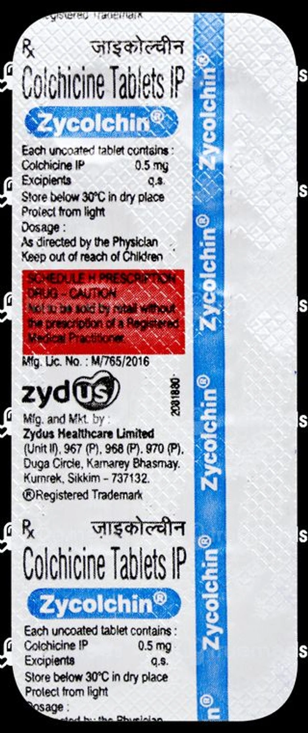 Zycolchin 0.5mg Tablet is a medicine used to treat gout attacks and prevent gout recurrence in adults. It works by reducing the level of uric acid in the blood, which prevents the formation of hard uric acid crystals in the joints.