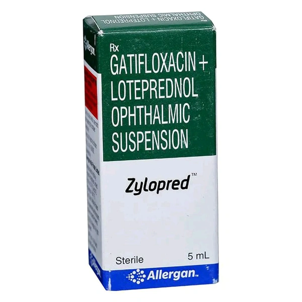 Zylopred Ophthalmic Suspension 5 ml is used to treat bacterial infections, including conjunctivitis/pink eye. It also decreases the risk of eye infections such as conjunctivitis (inflammation of the conjunctiva) and other eye inflammatory conditions (cornea, iris, and connective tissue) in postoperative patients. It contains Gatifloxacin and Loteprednol, which kills bacteria and also reduces symptoms associated with infection, such as redness and irritation of the eye, and decreases the risk of infections. It may cause side effects such as watery eyes, irritation in the eyes, and eye itching. Before taking this medicine, you should tell your doctor if you are allergic to any of its components or if you are pregnant/breastfeeding, and about all the medications you are taking and pre-existing medical conditions.