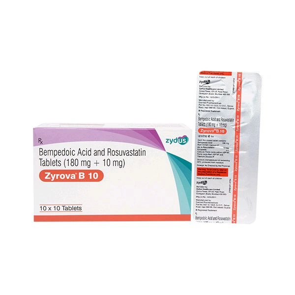 Zyrova B 10 Tablet 10's is used to lower the levels of bad cholesterol called low-density lipoprotein (LDL), a type of fat in the blood.